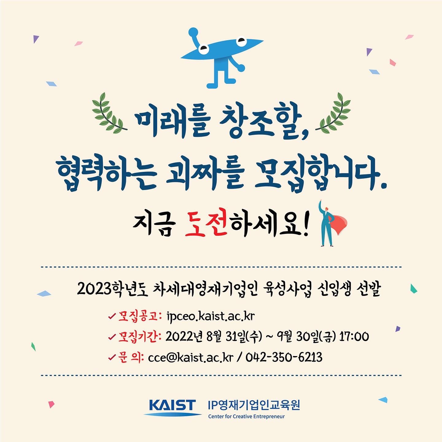 [์จ๋ผ์ธ ์ค๋ช ํ] 2023ํ๋ ๋ KAIST IP์์ฌ๊ธฐ์ ์ธ๊ต์ก์ ์ ์ ์(14๊ธฐ) ์ ๋ฐ ์ค๋ช ํ ์ ์ฒญ ์๋ด : KAIST IP