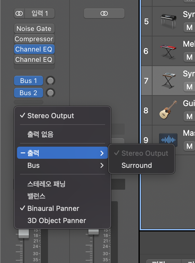 2. ๋ฉ๋ด์์ Surround ๋์ Binaural Panner ์ ํ