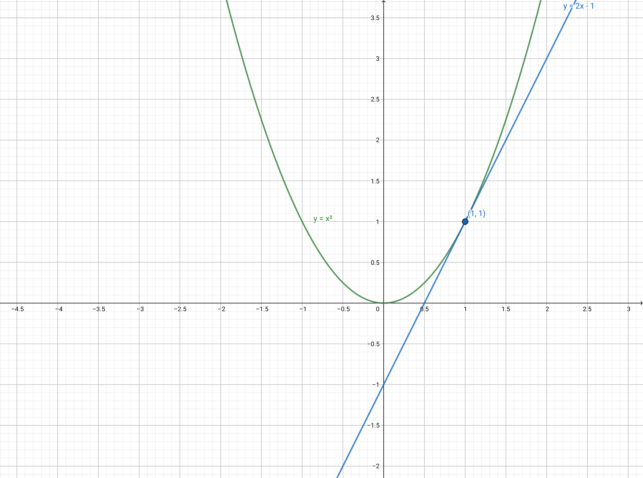 ์ ๊ทธ๋ฆผ์ ๋ณด๋ฉด, (1,1)์ ์ ์ ์ ๊ธฐ์ธ๊ธฐ๋ 2์ด๋ค.